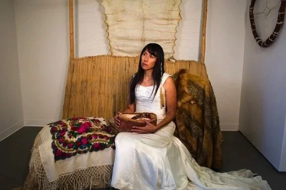 Based on her historical findings at O’Keefe Ranch, Mariel’s MFA thesis, “The Earth Re:Claimed Her. A continuing study of Blood Memory, Embodied Story Practice and Personal Governance,” won her a SSHRC scholarship and was the foundation for bringing new histories to light. Mariel has travelled to Chile from Temuco to Socorama demonstrating a sqilxw-centric land-based visitor protocol, and performing how colonial violence still affects the bodies of Indigenous women through her performance Illegal: Let Us Live, co-authored by the late Dr. Greg Younging. In 2022 Mariel won a CGS SSHRC Doctoral Scholarship and the Teyonkwayenawá:kon – Queens University Graduate Scholarship. Mariel’s writing can be found in the chapter “Sqilxw Woman: She Brings Bundles,” in the forthcoming book Unsettling Education: Decolonizing and Indigenizing the Land, “Respons(A)bility: Weaving Words of Responsibility Through Story,” in the online journal Revue Percees, “stəqpistns iʔ pqlqin / kihew omīkwan Eagle Feather,” in New Directions for Theorizing in Qualitative Inquiry, “Experiencing Resonance as a Practice of Ritual Engagement,” a co-authored chapter in Research and Reconciliation, and alt.Theatre Cultural Diversity and the Stage Magazine, Vol 14.1—14.3 as guest curator and writer. Belanger’s writing can also be found in the chapter “stəqpistns iʔ pqlqin / kihew omīkwan Eagle Feather” New Directions for Theorizing in Qualitative Inquiry Norman Denzin, James Salvo. Myers Educational Press, “Experiencing Resonance as a Practice of Ritual Engagement” co-authored chapter in RESEARCH AND RECONCILIATION Andrea Breen, Lindsay Dupre, Shawn Wilson, and alt.Theatre cultural diversity and the stage magazine Vol 14.1 through 14.3 as guest curator and writer.